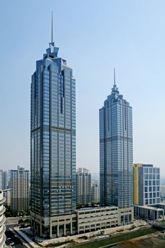 大厦设计通过建筑布局造型及错位等手法充分利用金鸡湖、公园的景观,实现景观利用化。同时精心布置办公楼、公寓及商场,使其互成景观,减少干扰,大厦以水为场地主题景观,传承苏州水乡特色,同时通过空中全景会所打造形象标志,品牌吸引力。