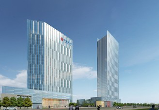 金融港商务中心项目由园区地产公司开发建设,位于现代大道南,苏州大道北,西临南施街,东临河道,紧邻苏州轨道交通一号线南施街站出口,处于正在建设中的金鸡湖东侧新商务区的主轴线上。项目地块面积约为25896平方米,总建筑面积约为15万平方米。该地块分为东西两部分进行开发建设,其中,东楼建筑高度为160.2米,共42层,业态定位为服务式公寓塔楼,包含了四星级酒店、精装公寓,以及配套商业,设有健身中心、餐馆等辅助商业;西楼为中信银行苏州分行新大楼,建筑高度为118米,共22层,配有14米高的2层的裙楼,包括了银行营业厅及办公空间,具有接待、存储、会议、培训等多种功能。